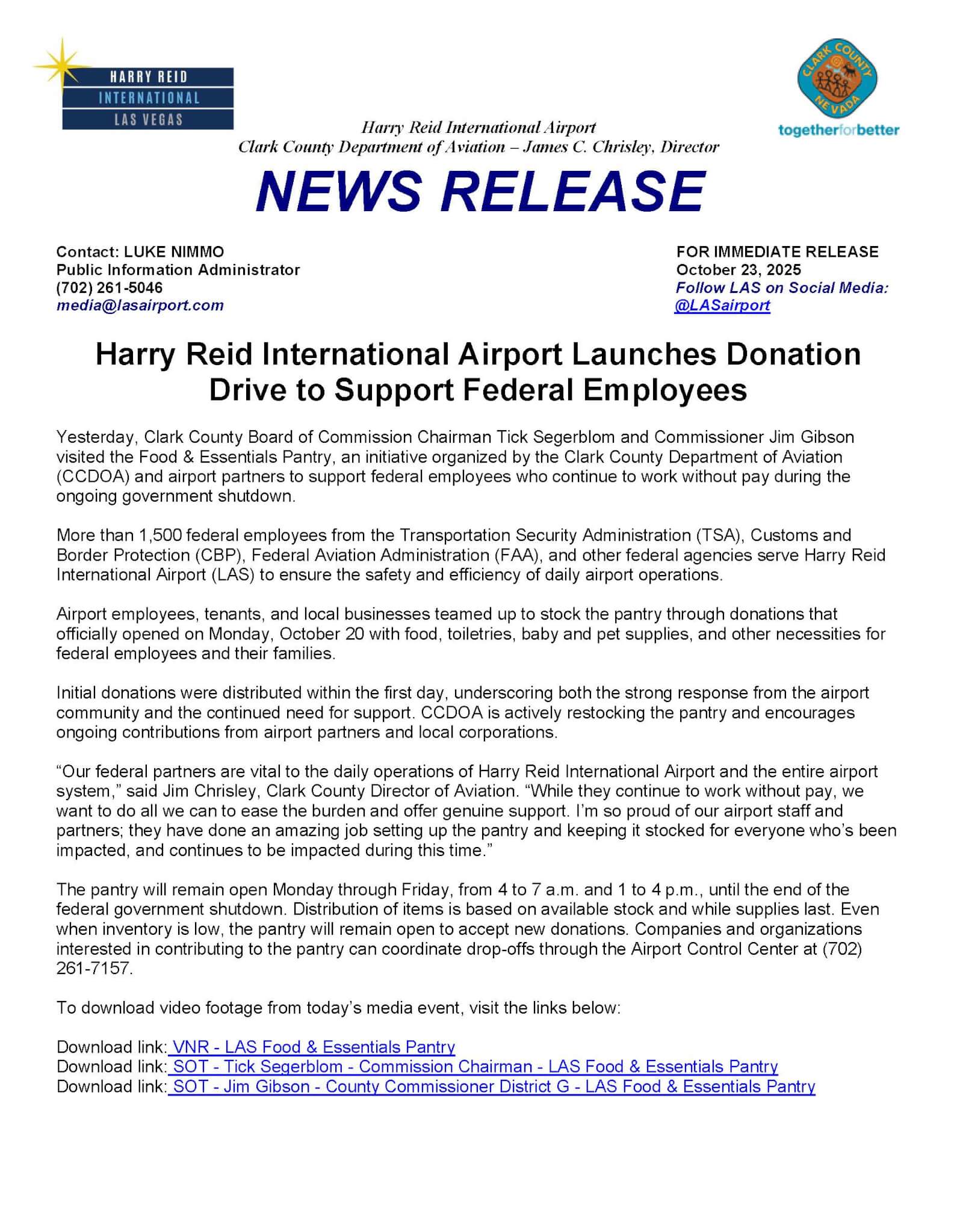 Harry Reid International Airport Launches Donation Drive to Support Federal Employees
