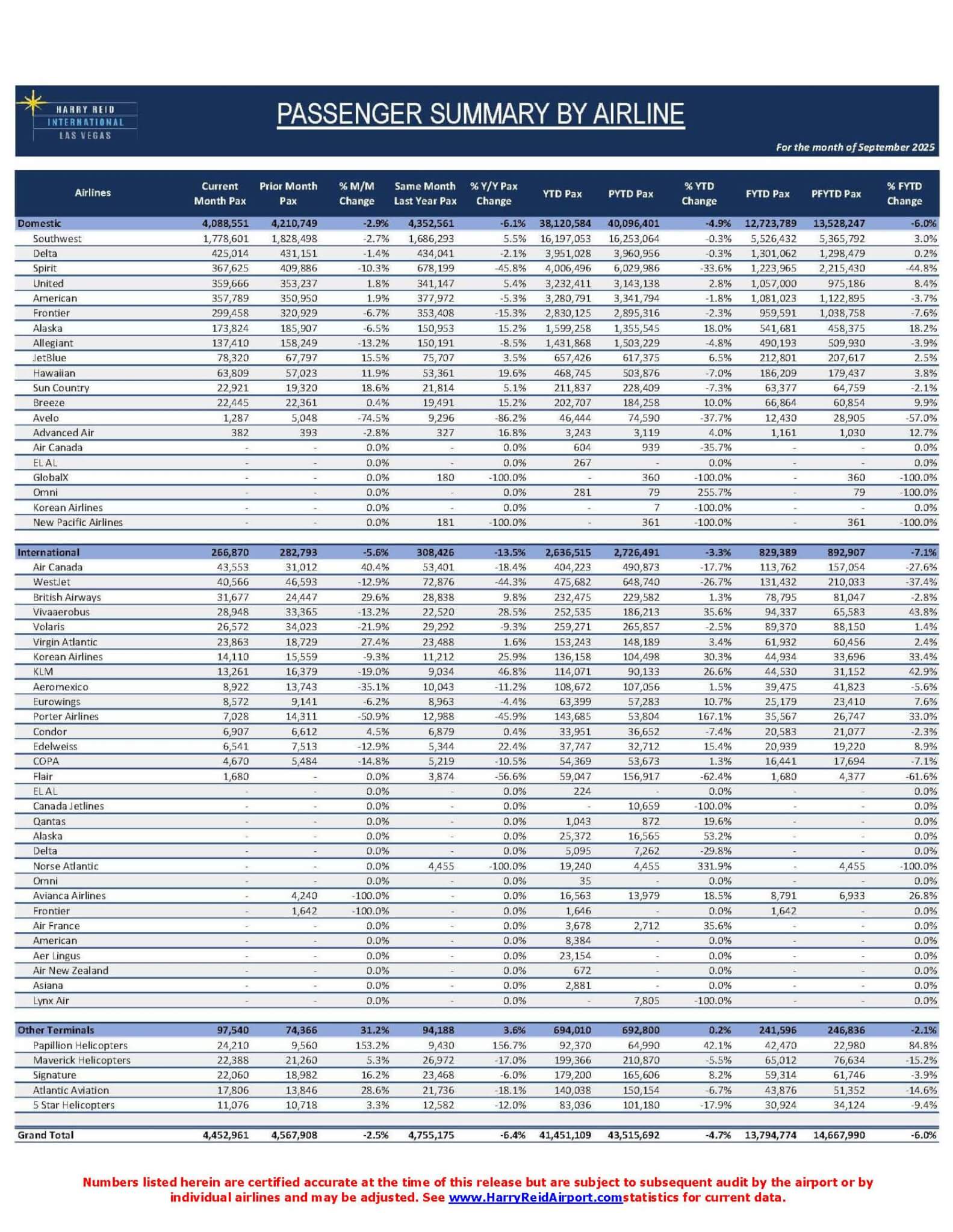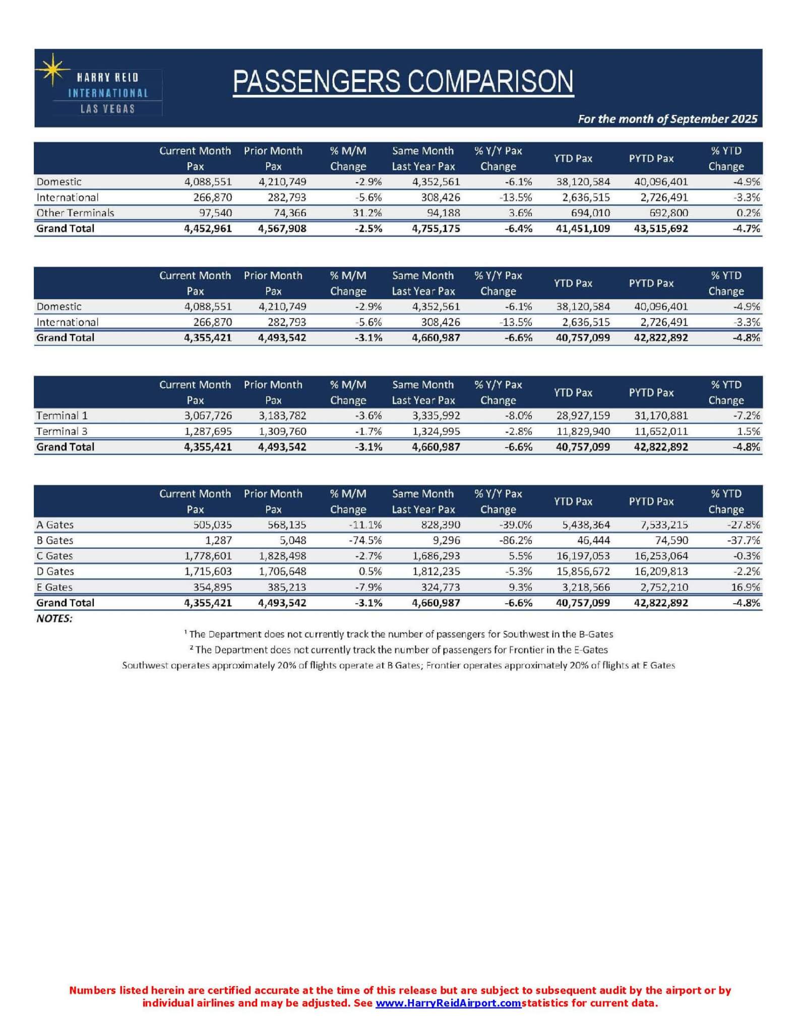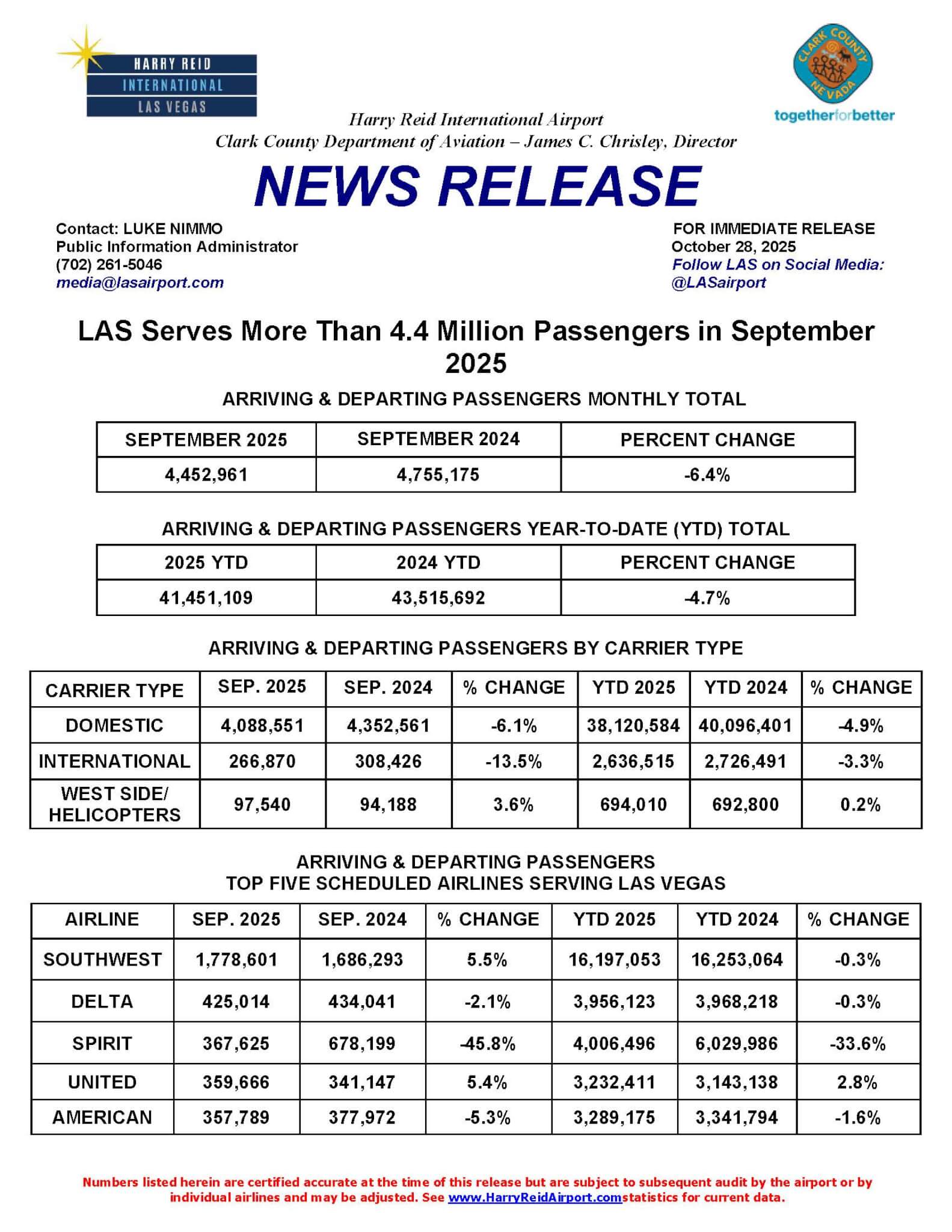 LAS Serves More Than 4.4 Million Passengers in September 2025