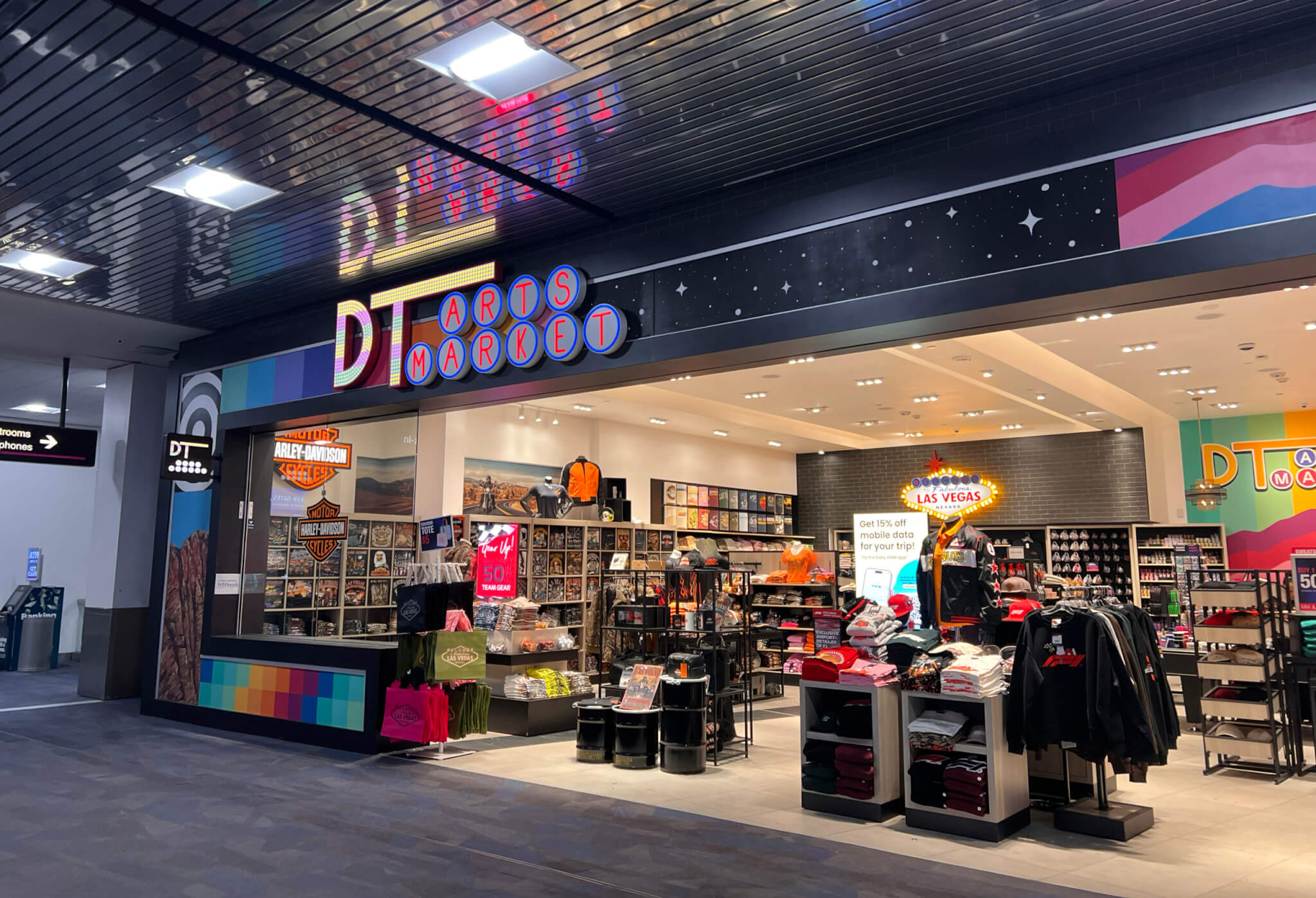 DT Arts Market captures the downtown Las Vegas vibe and features a variety of art and gifts created by local makers. Shoppers can also find items for fans of Las Vegas’ professional sports teams. DT Arts is located in the Terminal 1 pre-security shopping area.