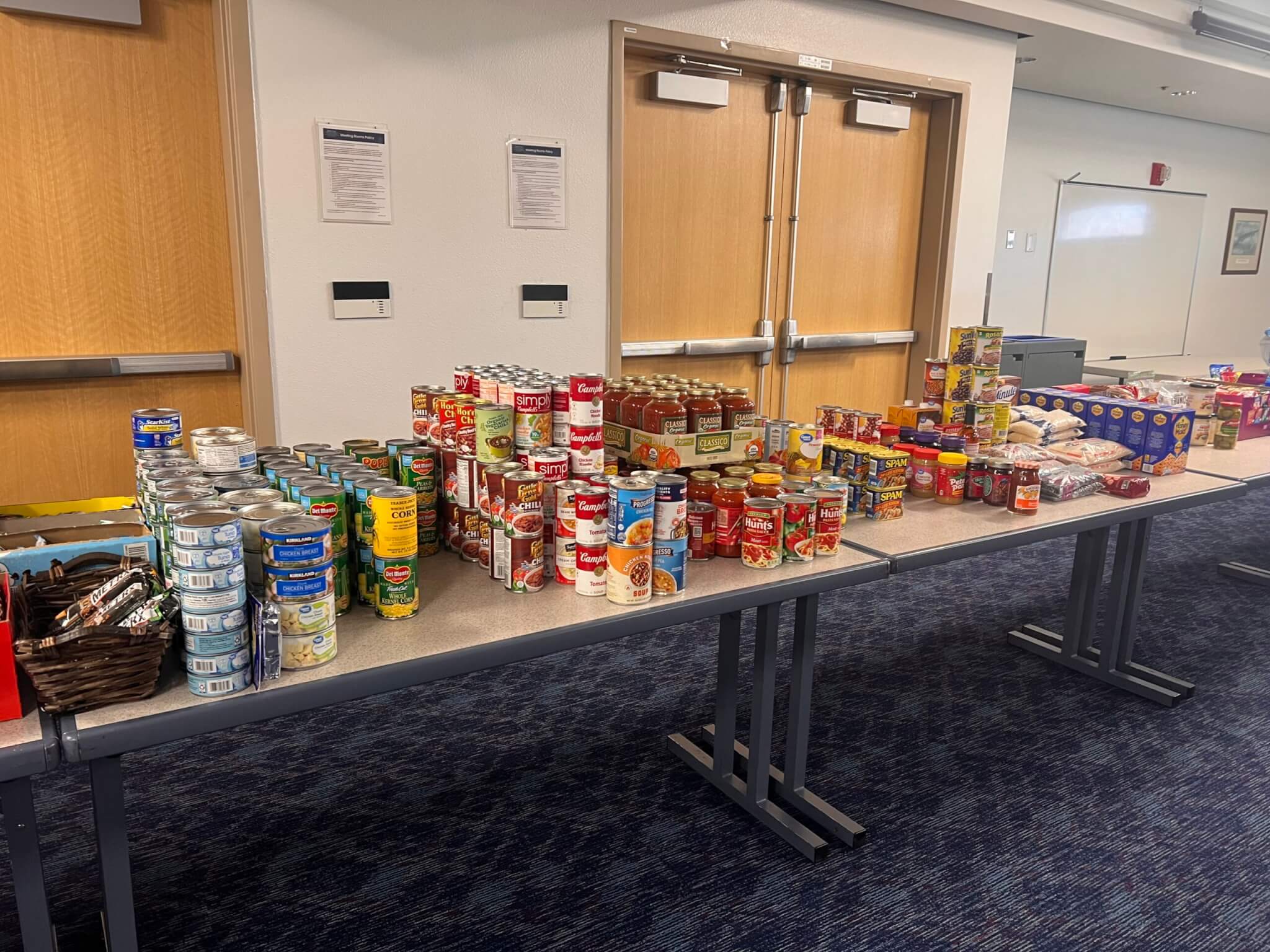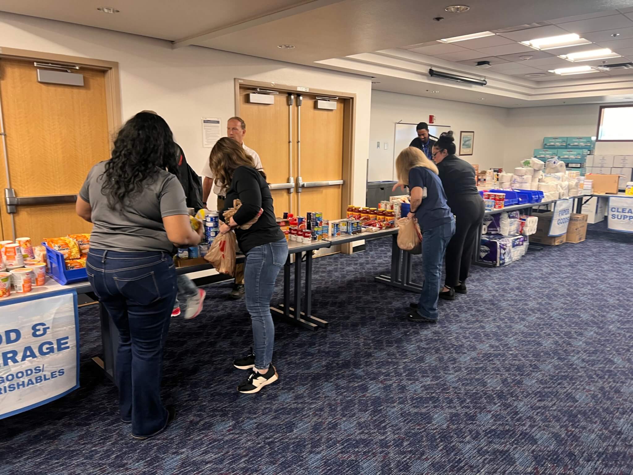 A variety of food items, including non-perishable goods, drinks, and snacks, are available in the pantry, along with essential household products, baby care items, and pet food. This is to ensure that airport employees working without pay have access to necessities without added stress.